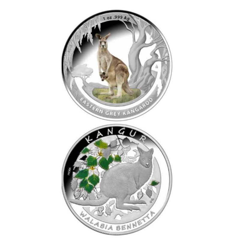 Kangaroos of the World Set 2013 – Australien & Polen – 2×1 oz Silber Proof coloriert