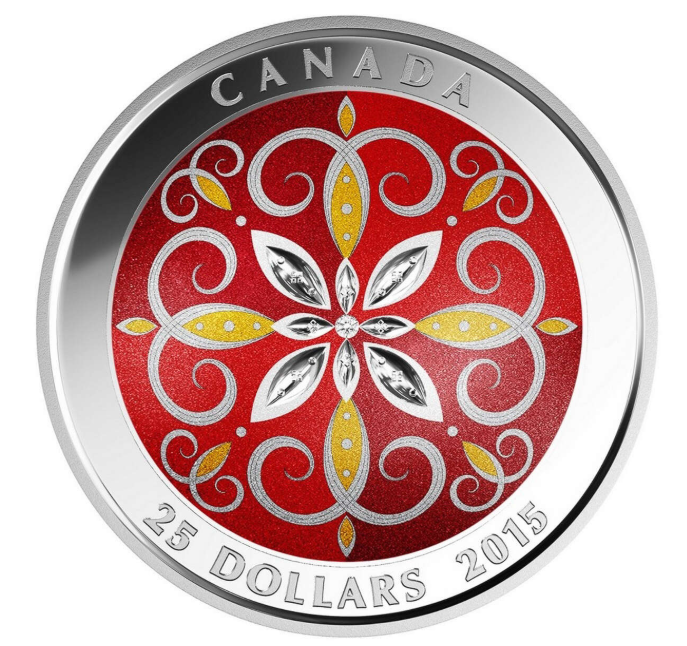 Die 25 Dollar Silbermünze Kanada 2015 Weihnachtsornament beeindruckt durch ihr aufwendig gestaltetes Farbdesign und eine ultra-hohe Reliefprägung. Inspiriert von klassischen Christbaumschmuckstücken verbindet diese Ausgabe traditionelle Weihnachtsoptik mit moderner Prägetechnik. Die streng limitierte Auflage von 6.000 Stück macht sie zu einem besonderen Sammlerstück.